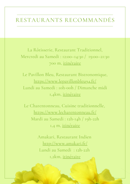 * Les entrées / plats / desserts ne sont pas fournis