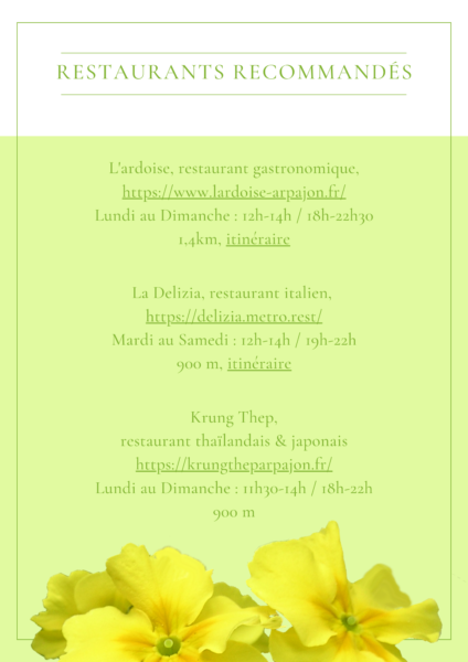- Horaire au choix entre 11h et 19h